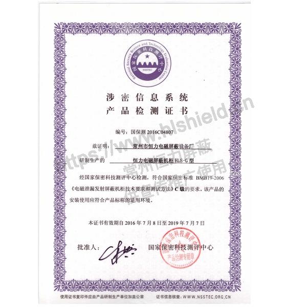 1. 具有國家保密局BMB19-2006《電磁泄露發(fā)射屏蔽機柜技術(shù)要求和測試方法》C級認證的檢測證書及檢測報告(包含新增加功能:散熱、溫濕度監(jiān)控報警、屏效監(jiān)控報警功能檢測)。