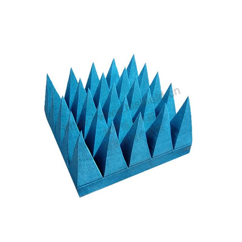 高性能寬帶角錐吸波材料是一種實(shí)心錐型含碳黑的泡沫吸收體,是各種微波暗室的主體材料。這種材料在垂直入射和斜入射條件下,具有極好的寬帶性能,良好的散射和透射衰減性能。